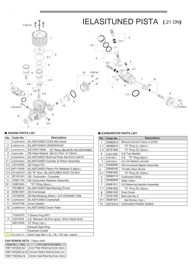 – New bottom needle produced by O.S. which greatly optimizes acceleration at low revs.